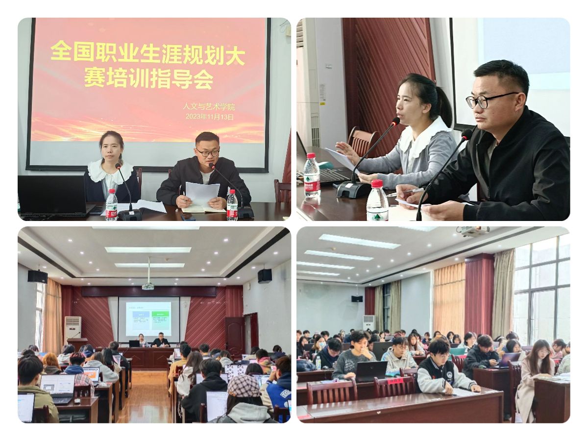 为提升我院学生的职业生涯规划意识,引导大学生树立正确的就业观念,动员学生积极报名参与本届职业生涯规划大赛,人文与艺术学院于11月13日在艺术楼A230召开了全国职业生涯大赛培训指导会。分团委书记兼学工办主任、就业辅导员、各班学生代表参加。