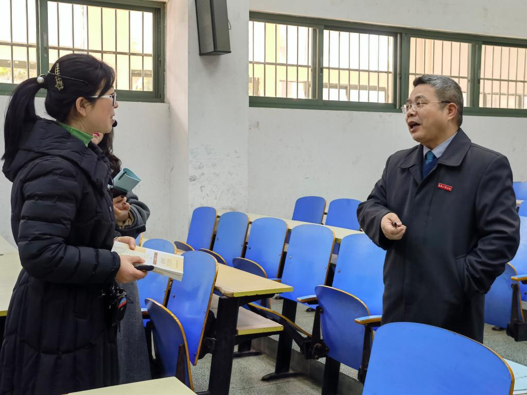 2月24日,校党委委员、纪委书记殷安全在人文与艺术学院领导班子成员的陪同下走进思政课堂开展听课。