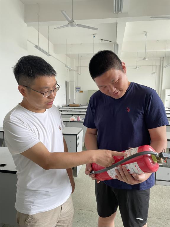 在检查过程中,黄春燕副院长对每个实验室的消防设备、消防安全管理逐一进行检查;同时也指出了实验室环境卫生方面有及学生使用空调方面的问题,现场就责令相关负责人进行整改。