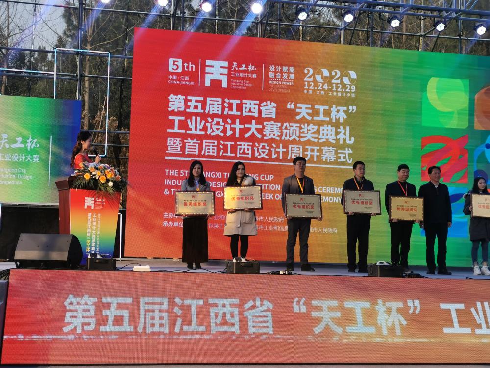 12月24日,由江西省工信厅和宜春市政府主办的第五届江西省“天工杯”工业设计大赛颁奖典礼暨首届江西设计周开幕式在丰城市举办。我院学生曾靓云设计的“公交自旋转消毒把手设计”产品以卓越的产品设计和创新的产品思维,在1万多件参赛作品中脱颖而出,捧获概念组“三等奖”。由于组织工作出色,我院被大赛组委会授予“优秀组织奖”的荣誉称号,副院长万芬芬被授予“先进工作者”的荣誉称号。
