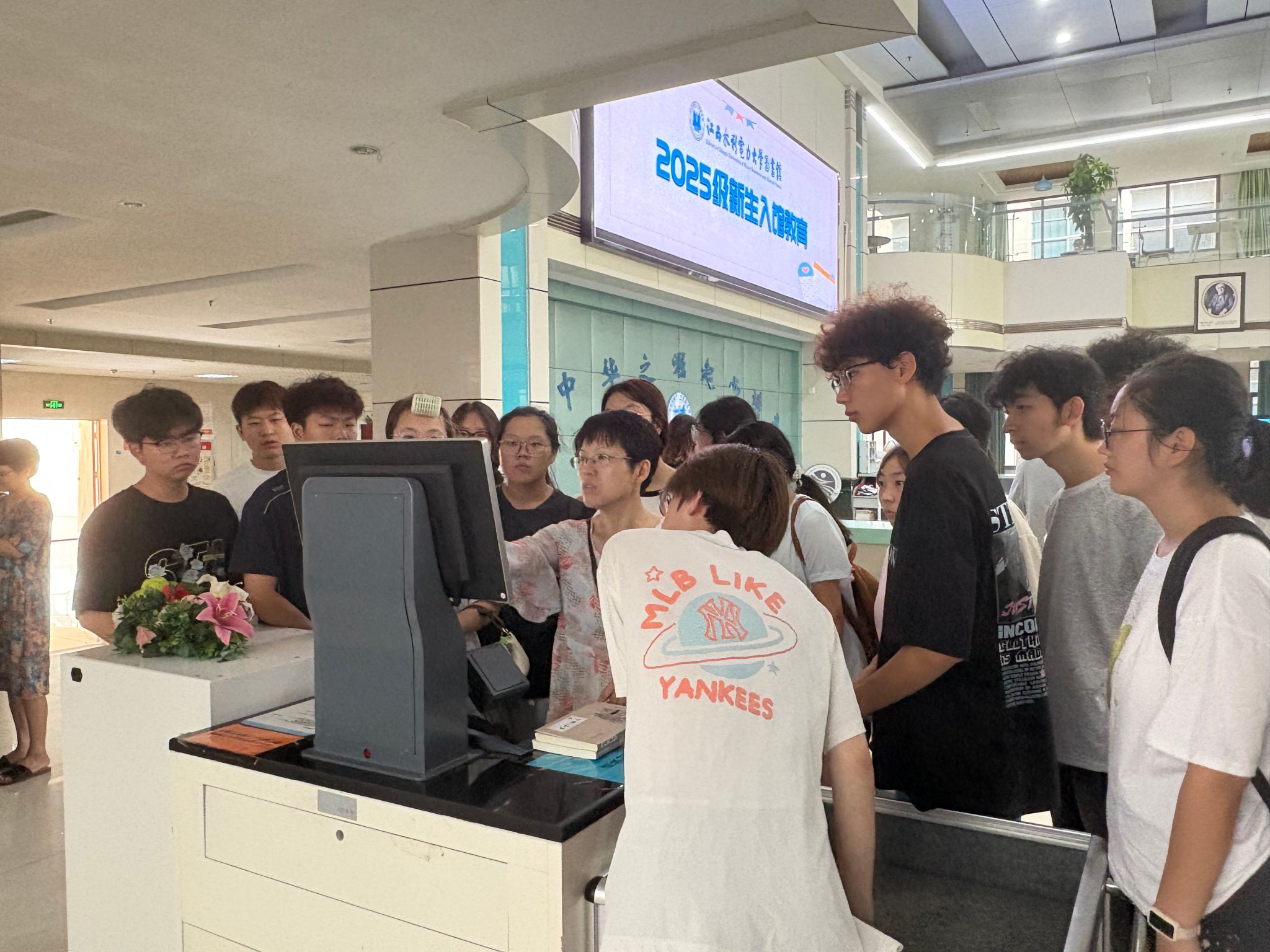 9月28日,2025级新生以班级为单位在图书馆观看入馆教育专题视频,初步了解了图书馆藏分区、开放时段、文献检索方法及借阅规则。图书馆工作人员进行自助借还机实操教学,从校园卡感应登录到借阅信息确认及突发异常处理,都进行了细致的讲解。此外,工作人员带领新生走进蔡超美术馆,感受校园深厚的文化艺术氛围。