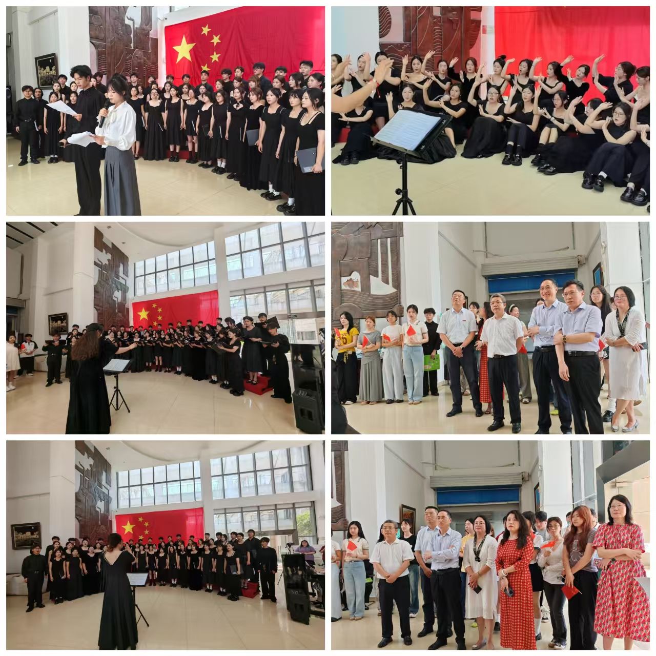 为扎实开展深入贯彻中央八项规定精神学习教育,厚植红色基因与廉洁文化根基,6月6日,南昌工程学院“水之韵”双周音乐会第四十二场——“红韵赣水,廉润初心”合唱音乐思政课以线上线下同步直播的形式,在艺术楼一楼大厅举行。学校党委书记汪胜前、党委副书记校长刘祖文、党委委员纪委书记殷安全、党委委员副校长陆伟锋等校领导、纪委、党委宣传部相关负责人及人文与艺术学院领导班子、音乐教研室教师参加活动,全校师生通过直播平台实时观看,互动点赞超4万次,留言区热评不断。